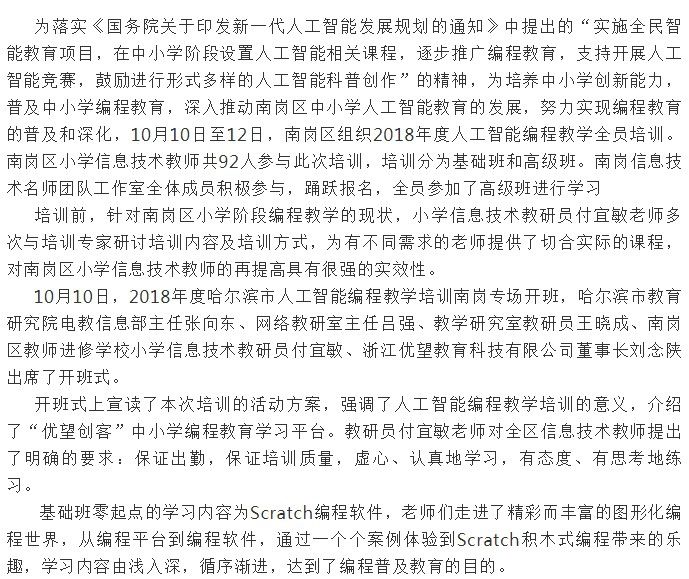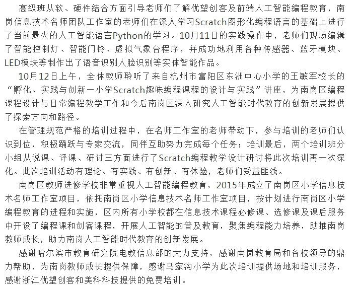 南崗信息技術(shù)名師團(tuán)隊(duì)工作室全員參加2018年度人工智能編程教學(xué)高級班