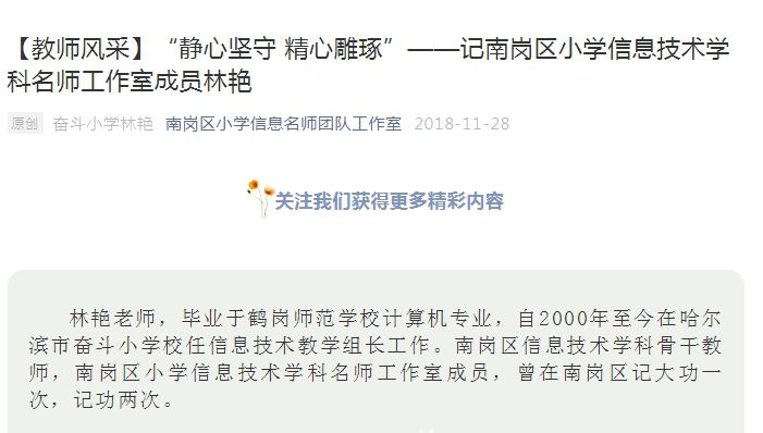 【教師風采】“靜心堅守 精心雕琢”——記南崗區(qū)小學信息技術學科名師工作室成員林艷