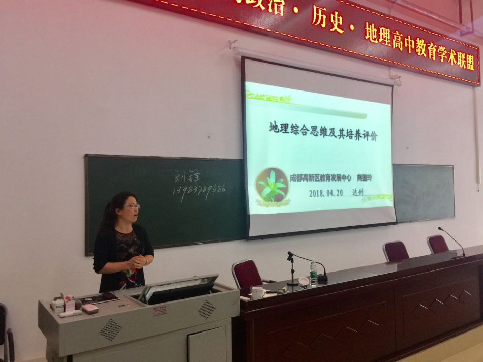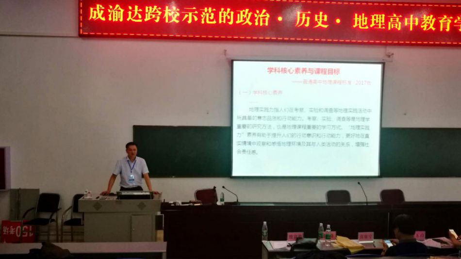 2018年4月19日-21日,由達(dá)州市教科所主辦的“成渝達(dá)示范高中政治·歷史·地理教育聯(lián)盟學(xué)術(shù)論壇”在中國(guó)“圓心城”——達(dá)州舉辦。本次學(xué)術(shù)論壇,來自華東師范大學(xué)地理科學(xué)學(xué)院黨委書記段玉山教授在內(nèi)的十余位全國(guó)、全省知名的專家學(xué)者蒞臨指導(dǎo),同時(shí)還有來自成都市、重慶市、達(dá)州市部分知名學(xué)校的百余位教師同仁參會(huì)觀摩學(xué)習(xí)。范永杰、熊國(guó)玲地理名師工作室導(dǎo)師及部分成員參加了本次大會(huì)并應(yīng)邀作主旨發(fā)言和示范課展示。