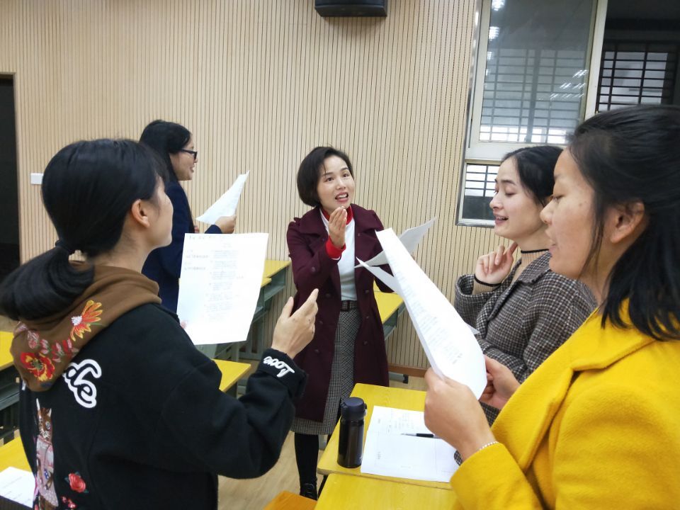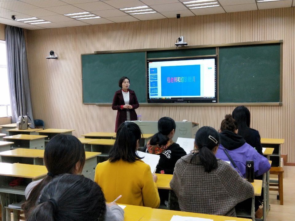 首先,工作室邀請程海霞老師為大家上了一堂朗誦培訓(xùn)課。培訓(xùn)中,程老師以一首朦朧詩《相信未來》為例,通過深入細(xì)致地講解,聲情并茂地片段朗誦,向大家傳授了朗誦備稿五部曲——分析作者背景和寫作背景,了解詩歌主題及目的,劃分詩歌層次及確定重點,確定朗誦基調(diào)以及停連等變化的處理。在此過程中,程老師還與工作室的成員們進行了互動,對老師們的朗讀進行了指導(dǎo)。程老師以豐厚的學(xué)識涵養(yǎng)、圓融渾厚的音色、優(yōu)雅沉穩(wěn)的體態(tài)以及高超的朗誦藝術(shù),讓在座的老師真切感受著語言文字的魅力與情感,領(lǐng)悟著朗讀者的優(yōu)雅與幸福。培訓(xùn)結(jié)束,老師們感到意猶未盡,紛紛表示受益頗多。