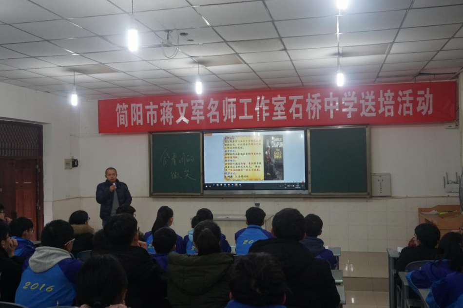 藹藹冬霧,擋不住學(xué)生們求知的熱情;瑟瑟冬風(fēng),拂不去學(xué)習(xí)者思考的心緒。12月21日上午,簡(jiǎn)陽(yáng)市蔣文軍名師工作室送培活動(dòng)在石橋中學(xué)開展,活動(dòng)得到了石橋中學(xué)校領(lǐng)導(dǎo)馬元貴、胡林、謝建國(guó)的高度重視。名師工作室領(lǐng)銜人、簡(jiǎn)陽(yáng)市教師進(jìn)修學(xué)校副校長(zhǎng)蔣文軍帶領(lǐng)其工作室全體成員及石橋中學(xué)部分語(yǔ)文教師參加本次活動(dòng)。此次送陪活動(dòng)由石橋中學(xué)周天成老師給我們帶來(lái)了精彩的語(yǔ)文課《<淘金記>含淚的微笑》。