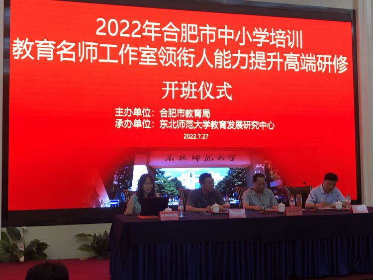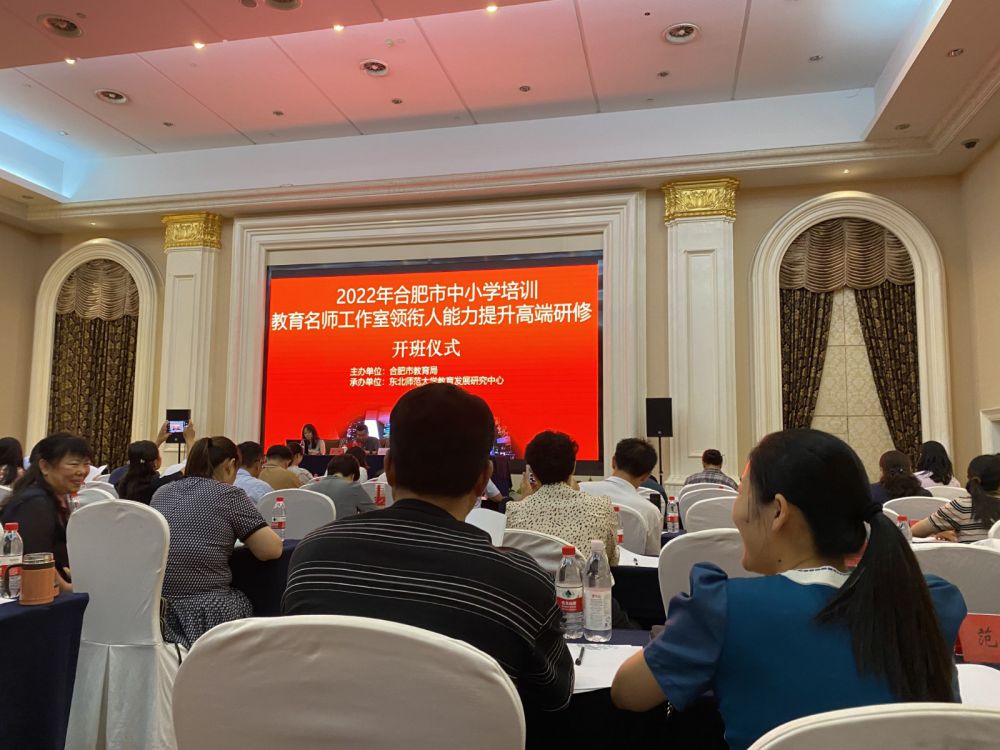 由合肥市教育局主辦、東北師范大學(xué)承辦的合肥市中小學(xué)教育名師工作室領(lǐng)銜人能力提升高端研修班,2022年7月27日在合肥市巢湖中廟碧桂園鳳凰酒店舉行。參加此次培訓(xùn)的有合肥市2019級(jí)、2020級(jí)、2021級(jí)、2022級(jí)名師工作室領(lǐng)銜人近120人。上午9:30,合肥市教科院副院長(zhǎng)張勇健,合肥市教育名師工作室領(lǐng)導(dǎo)小組辦公室主任吳申道,東北師大教育發(fā)展研究中心主任王輝參加了開班儀式,東北師大馬啟娜主持了開班儀式。開班儀式上王輝主任致以熱情洋溢的歡迎詞,張勇健副院長(zhǎng)的講話幽默風(fēng)趣,引發(fā)熱烈掌聲。從本次培訓(xùn)的認(rèn)真,用心籌備與規(guī)劃說(shuō)起,提出本次四屆主持人各有年代特色,對(duì)輻射教育影響提出了不同的站位要求。指出無(wú)用之用為大用,每一位參與培訓(xùn)的主持人都要懷有空杯的心態(tài),謙虛學(xué)習(xí),用心領(lǐng)會(huì),不負(fù)使命,砥礪前行。