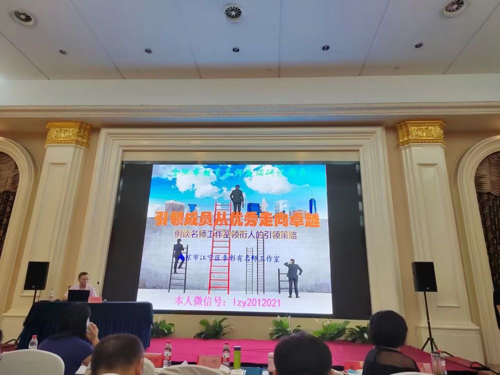 開班儀式后,南京市江寧區(qū)李彰有名師工作室主持人李彰有,應(yīng)邀做題為《引領(lǐng)成員從優(yōu)秀走向卓越——例談名師工作室領(lǐng)銜人的引領(lǐng)策略》的專題講座。講座分三個(gè)模塊:模塊一、解讀講座題目。模塊二、匯報(bào)引領(lǐng)成效。模塊三、例談引領(lǐng)策略。策略分九部分:第一部分順應(yīng)時(shí)代需要 。第二部分認(rèn)清所處階段。第三部分制定發(fā)展規(guī)劃。第四部分研修聚焦困惑。第五部分明晰成長(zhǎng)路徑。第六部分走出職業(yè)倦怠 。第七部分遵循發(fā)展規(guī)律。第八部分圍繞四方著力。第九部分提供展示平臺(tái)。