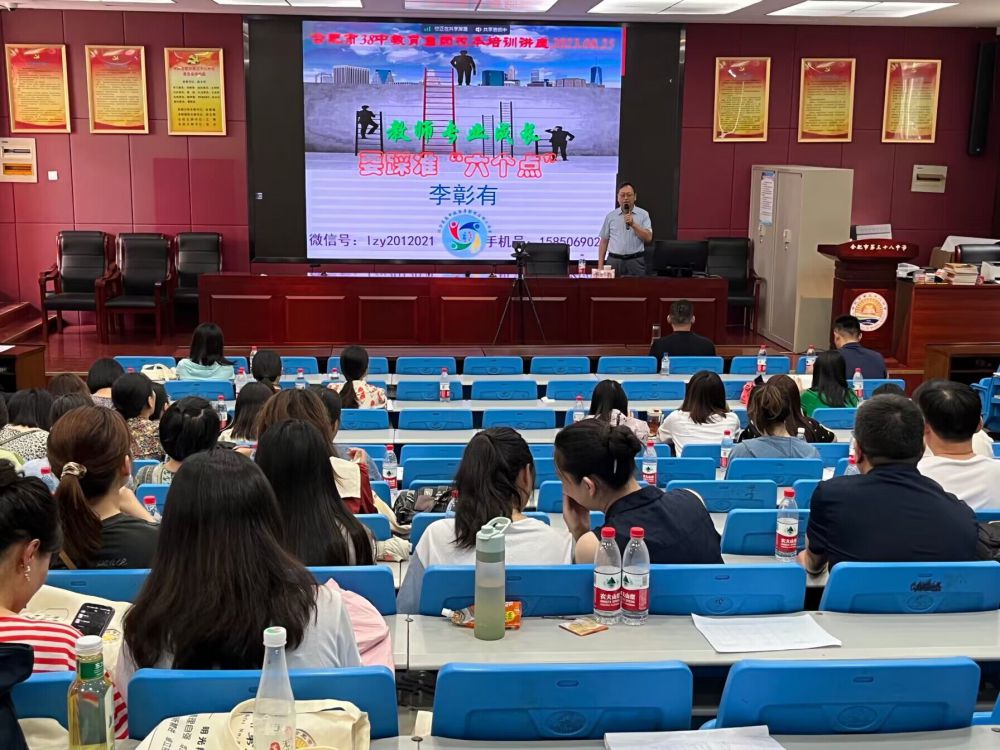 炎夏日燃激情,孜孜不倦磨匠心。2023年8月25日下午,合肥市第三十八中學教育集團700多位教師參加了2023年暑期校本培訓。校本培訓邀請了正高級教師、南京市德育帶頭人李彰有老師做了主題為《教師專業(yè)成長要踩準“六個點”》的專家講座。講座分三個會場,一個為線下,另兩個為線上。