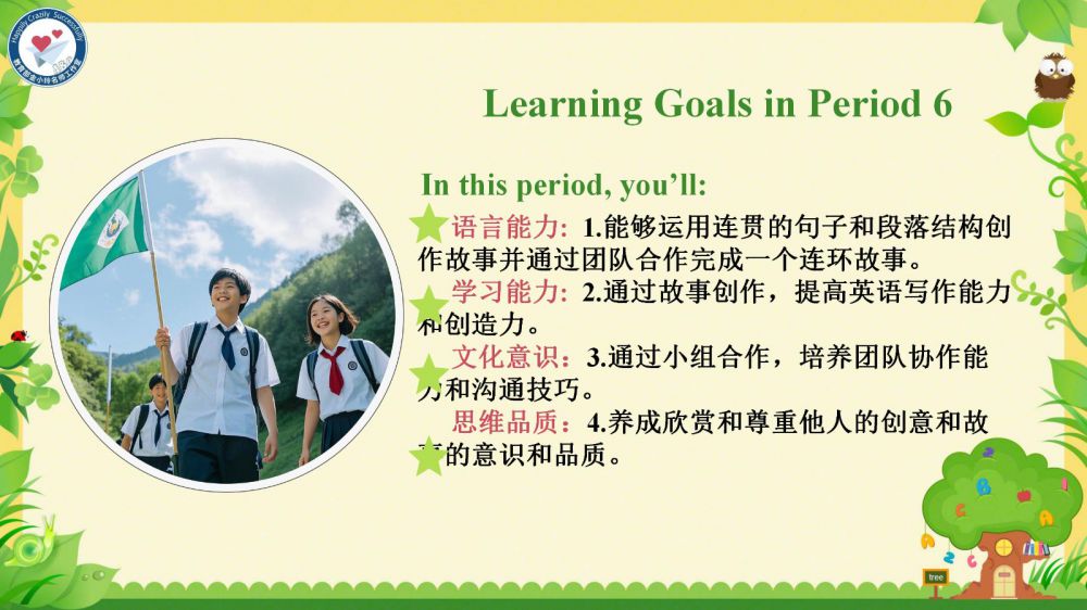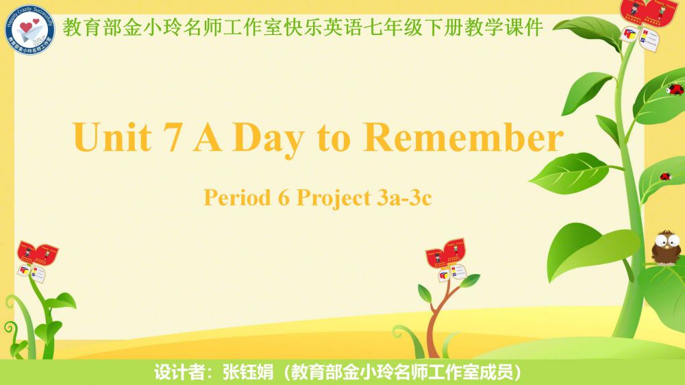 大家好!歡迎來到教育部金小玲名師工作室公眾號,我們?yōu)槟臏?zhǔn)備了新教材人教版七年級英語原創(chuàng)教學(xué)課件開發(fā)專欄。我們工作室團(tuán)隊(duì)匯聚了特級教師、教研員、省學(xué)科帶頭人、一線骨干教師等專業(yè)力量,為您傾力打造了新教材人教版七年級下冊相配套的快樂英語系列希沃教學(xué)課件,供大家備課參考使用。這些課件緊密貼合教學(xué)大綱,提供多樣化的教學(xué)資源和互動環(huán)節(jié),同時(shí)融入了創(chuàng)新的快樂英語教學(xué)理念,積極踐行新課程標(biāo)準(zhǔn),采用大單元教學(xué)評一體化教學(xué)模式,積極助力教師快樂地教,學(xué)生快樂地學(xué),快樂地育教學(xué)成果。讓我們一起啟程,踏上一段精彩紛呈的教學(xué)與學(xué)習(xí)之旅吧!本期推出的優(yōu)秀課件是由教育部金小玲名師工作室尤麗工作站團(tuán)隊(duì)的張鈺娟老師帶來的新教材人教版七年級下冊快樂英語Unit 7 Period 6 Project (3a-3c)希沃教學(xué)課件。