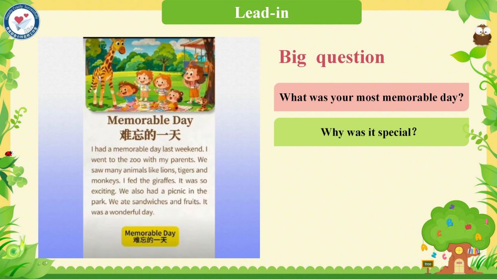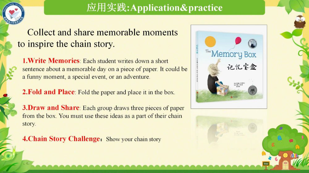 本課件秉承教育部金小玲名師工作室的快樂英語教學(xué)理念,以“語言為基、思維為翼、文化為魂”,通過真實(shí)情境創(chuàng)設(shè)和任務(wù)驅(qū)動,引導(dǎo)學(xué)生從“難忘的日子”到“記憶寶盒”,最終實(shí)現(xiàn)“接龍故事”——在語言學(xué)習(xí)中涵養(yǎng)積極人生觀,達(dá)成“工具性”與“人文性”的統(tǒng)一。