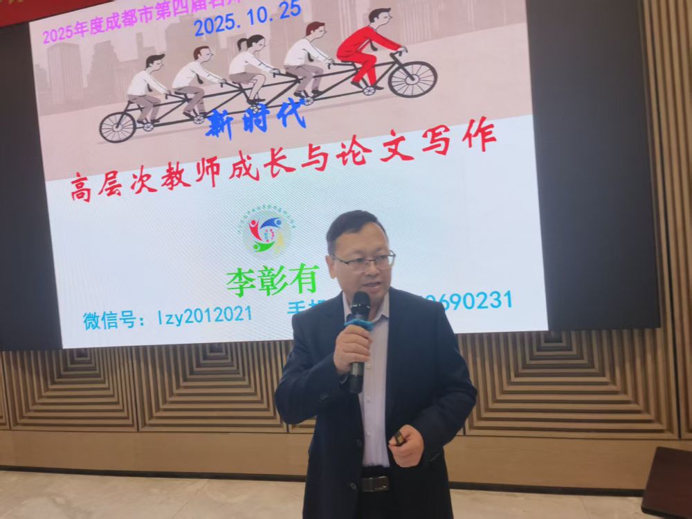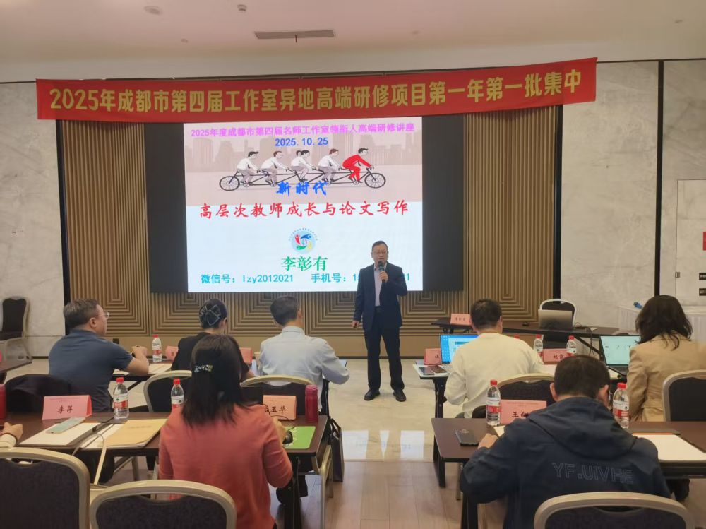 2025年10月25日,2025年度成都市教師素質提升第四屆工作室異地高端研修班在上海舉行。李彰有應邀為成都市名師工作室領銜人30人開設了《新時代高層次教師成長的觀念與論文寫作》的培訓講座。李老師作為工作室主持人的導師,下午指導名師工作室三年規(guī)劃的制定。他指出制定規(guī)劃必須厘清幾個問題:名師工作室規(guī)劃與工作室建設是什么關系,名師工作室規(guī)劃和工作室成員自我規(guī)劃是什么關系,制定名師工作室規(guī)劃需要注意哪些問題,您的名師工作室規(guī)劃的亮點是什么,您主持的名師工作室有徽標嗎,它和工作室規(guī)劃是什么關系。