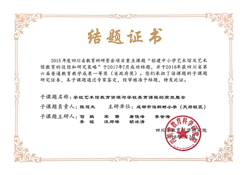 2018年6月課題獲四川省政府課題一等獎教育部二等獎