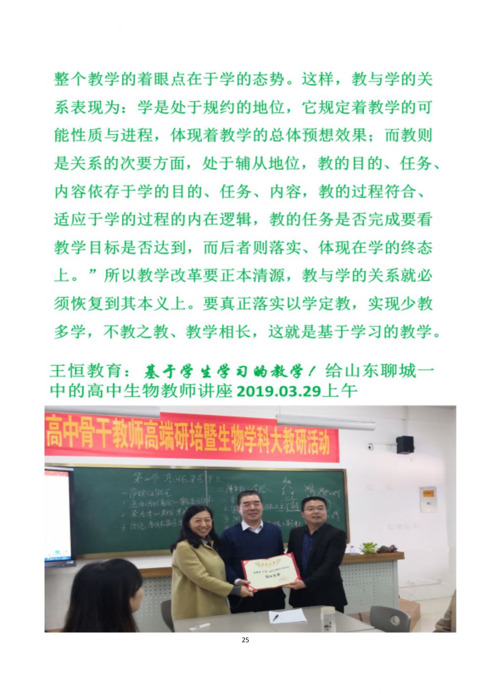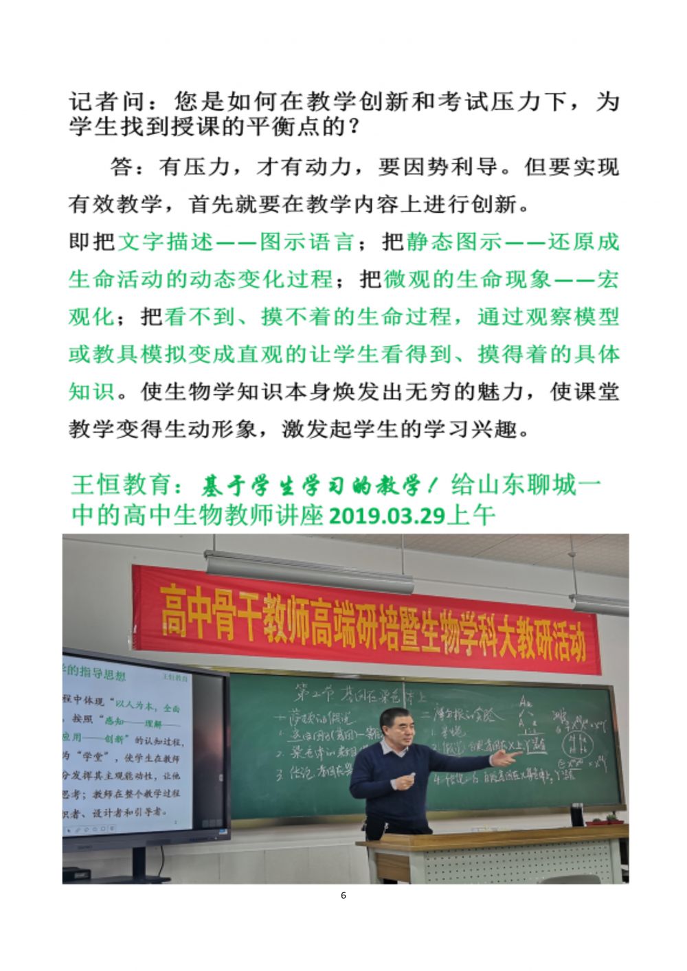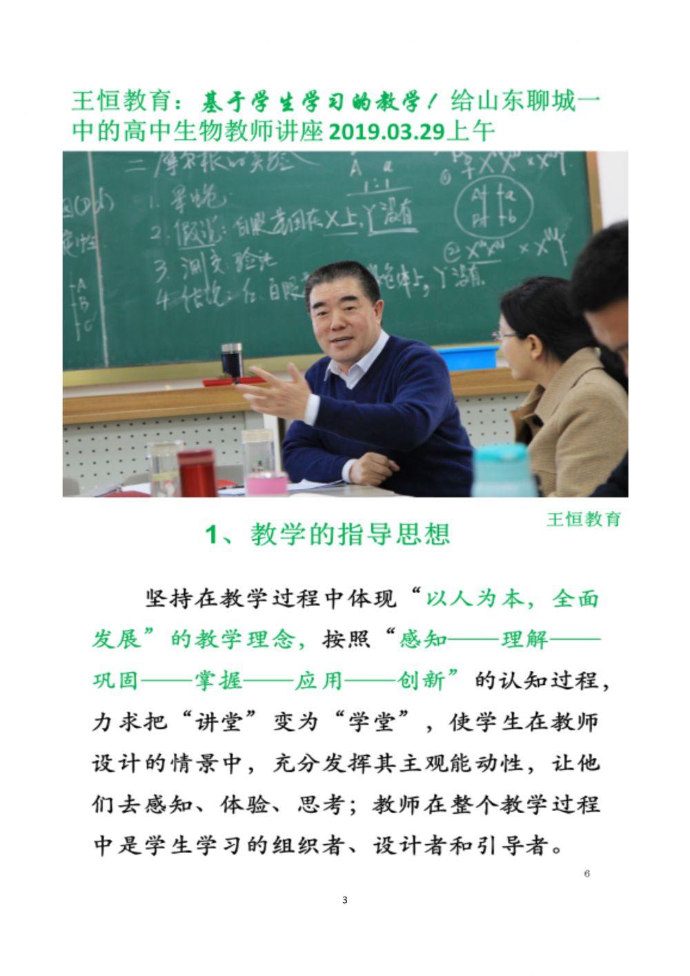 王恒教育:基于學(xué)生學(xué)習(xí)的教學(xué)!給山東聊城一中的高中生物教師講座