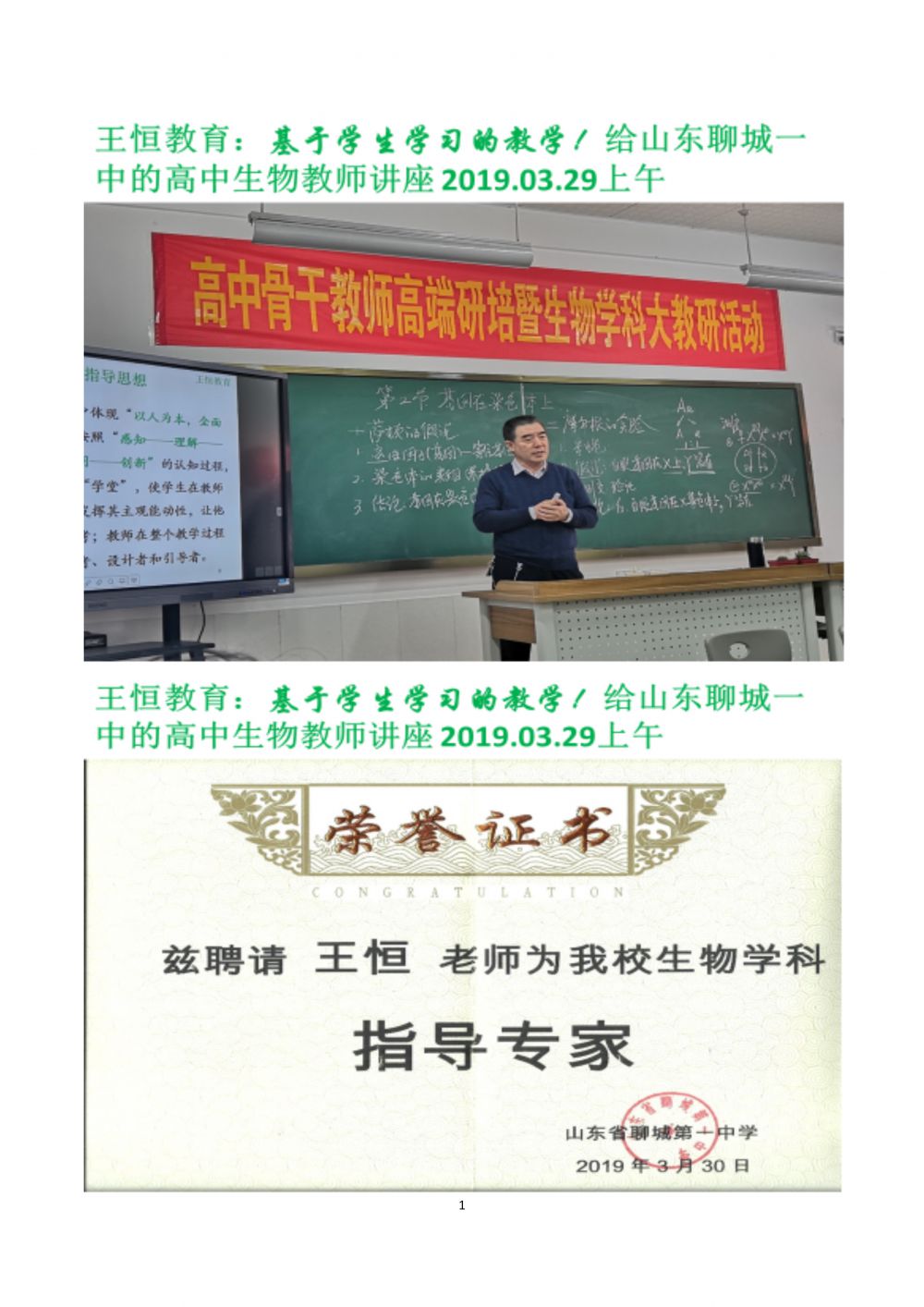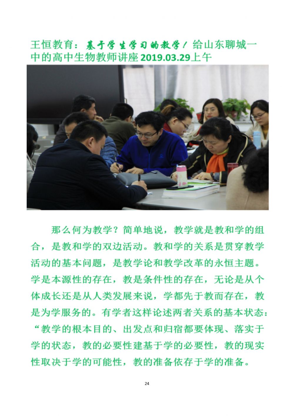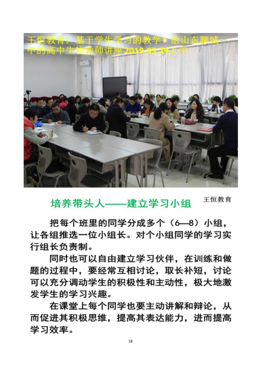 王恒教育:基于學(xué)生學(xué)習(xí)的教學(xué)!給山東聊城一中的高中生物教師講座