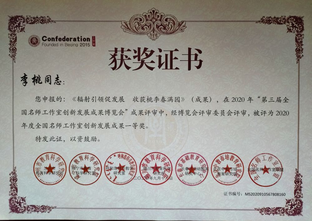 李桃工作室獲得全國先進名師工作室